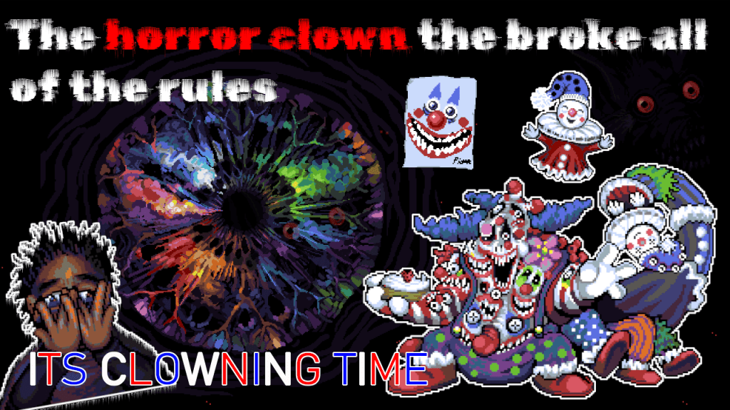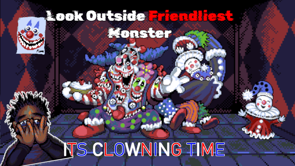 Look Outside subverts the creepy clown trope with Pierre, a tiny clown who is the only thing capable of paralyzing the protagonist, Sam, with fear. Despite Sam facing literal monsters and new gods, his severe chlorophobia makes him unable to speak or fight Pierre during their first encounter. The game hints at a confrontation, but contrary to expectations, Pierre is actually friendly and seeks to help Sam overcome his fear. Pierre who has been exposed to the Visitor’s cursed light, uses his clown persona to disguise his twisted form. He proposes working with Sam to conquer his chlorophobia through gradual exposure.